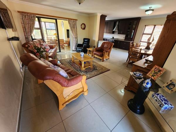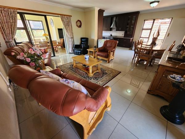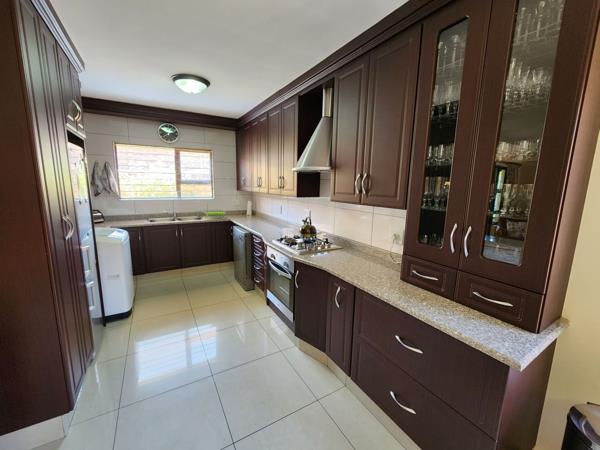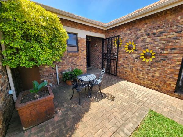 This lock up and go, single storey, facebrick and aluminium cluster is in immaculate condition and is tiled throughout with 3 spacious bedrooms. The master bedroom is en-suite and both bathrooms have a bath and a shower. The living area is open plan and there is an enclosed patio with built in braai and sliding doors leading out to a neat garden. The kitchen is modern with a gas hob and ceasar stone tops and the scullery area has space for your dishwasher and top loader washing machine. The double garage has automated doors, plenty of built in cupboards and direct entry to the house.