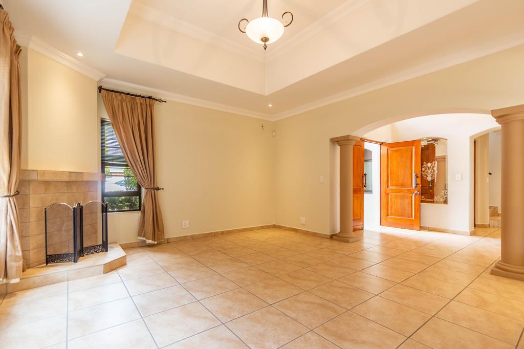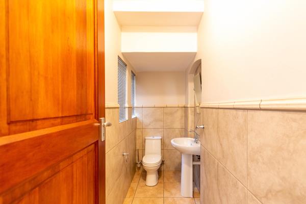 The modern kitchen is equipped with a walk-in pantry, electric oven and hob, and a scullery with space for three appliances. The formal tiled lounge is pre-wired for a satellite dish and speaker cables, perfect for entertaining. A guest toilet and a refined dining room add to the homes functionality.