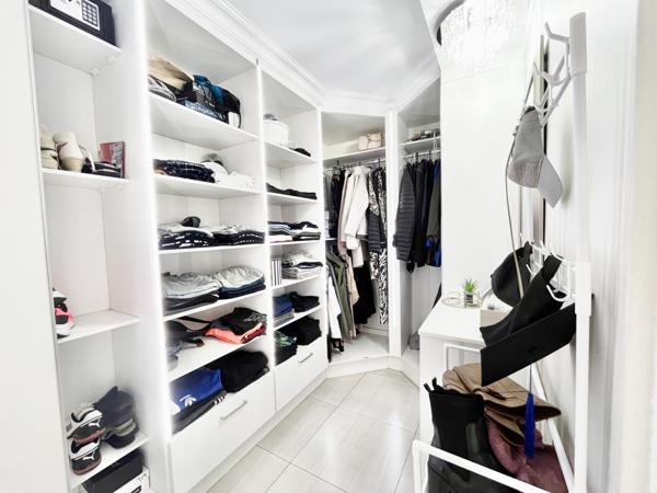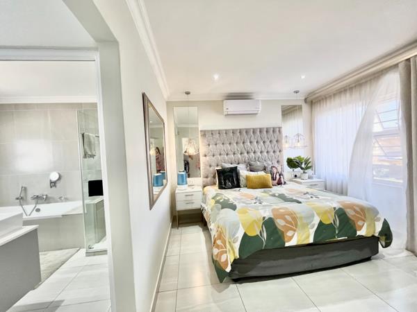 Step into elegance with a beautifully appointed main bedroom, featuring a large walk-in closet and a separate dressing room. The luxurious ensuite bathroom includes a double vanity, a bath, and a shower, providing a tranquil retreat. The main bedroom comfortably accommodates a king-size bed. Two additional bedrooms, located conveniently in the passage, share a second stylish bathroom with a double vanity.
