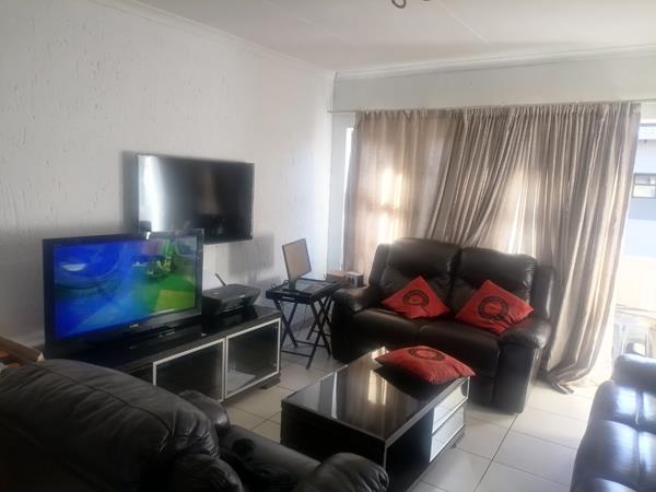 Modern two-bedroom apartment for sale in Beyers Park, Boksburg. The two bedrooms apartment offers comfort and convenience. The apartment has an open plan lounge area and kitchen with built-in cupboards/kitchen units and double sink. The kitchen has a provision for a washing machine connector. It offers sufficient space for relaxing, indoor entertainment and privacy. The apartment has a nice small balcony for a mini braai, nice view and fresh air.