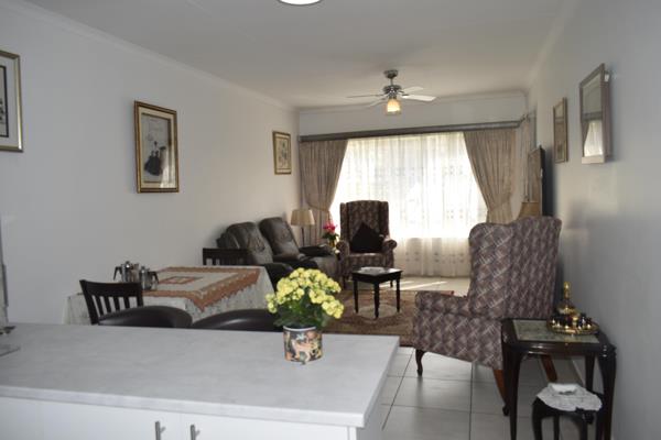Spacious tiled lounge and dining room with natural light oozing in and opening onto patio and garden area, extra large communal pool.