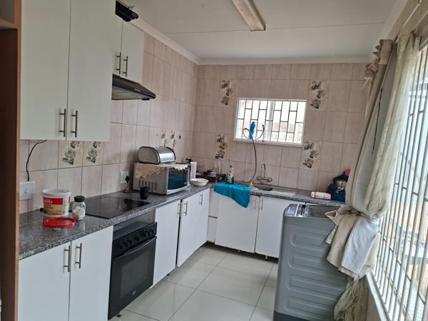 Kitchen spacious, neat, marble tops, with wooden bic, undercounter oven, hob, extractor fan