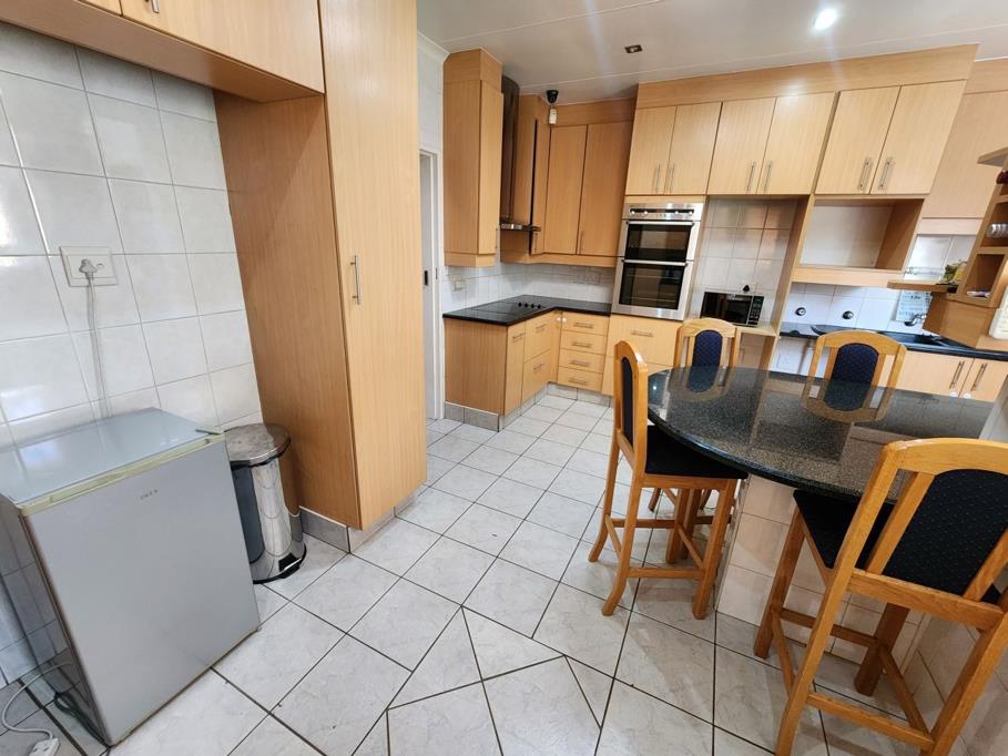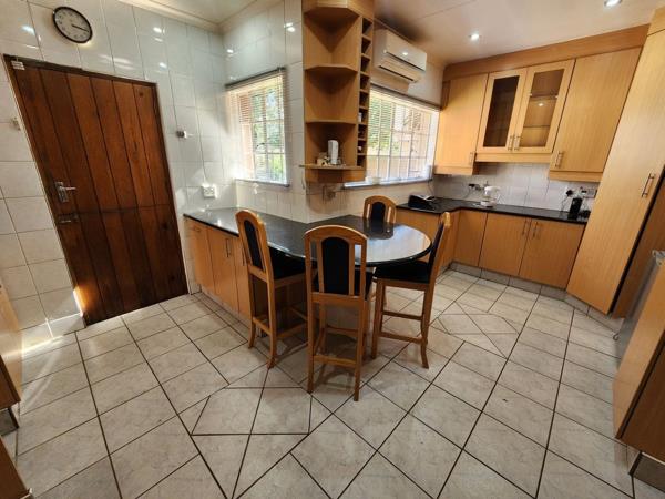 If location is important then this comfortable family home in the heart of Beyers Park is just what you are looking for. Enjoy the tranquillity of this quiet street with all amenities within close proximity. This 4 bedroom home is tiled throughout and there are 2 bathrooms. The master bedroom has a walk in closet, is en-suit with a bath and the family bathroom has a bath and shower. The lounge and dining area is open plan and there is a bar room with built in bar and fire place leading off the lounge. The dining area and separate study both have sliding doors leading out to the sparkling pool and enclosed lapa with built in braai. The large kitchen with granite tops, has plenty of cupboard space and space for a double fridge. There is a tiled tandem garage which can comfortably accommodate 2 vehicles and additional covered parking for 2 vehicles. There is staff accommodation comprising of a large room and separate bathroom with toilet, shower and basin.