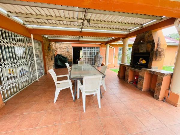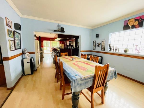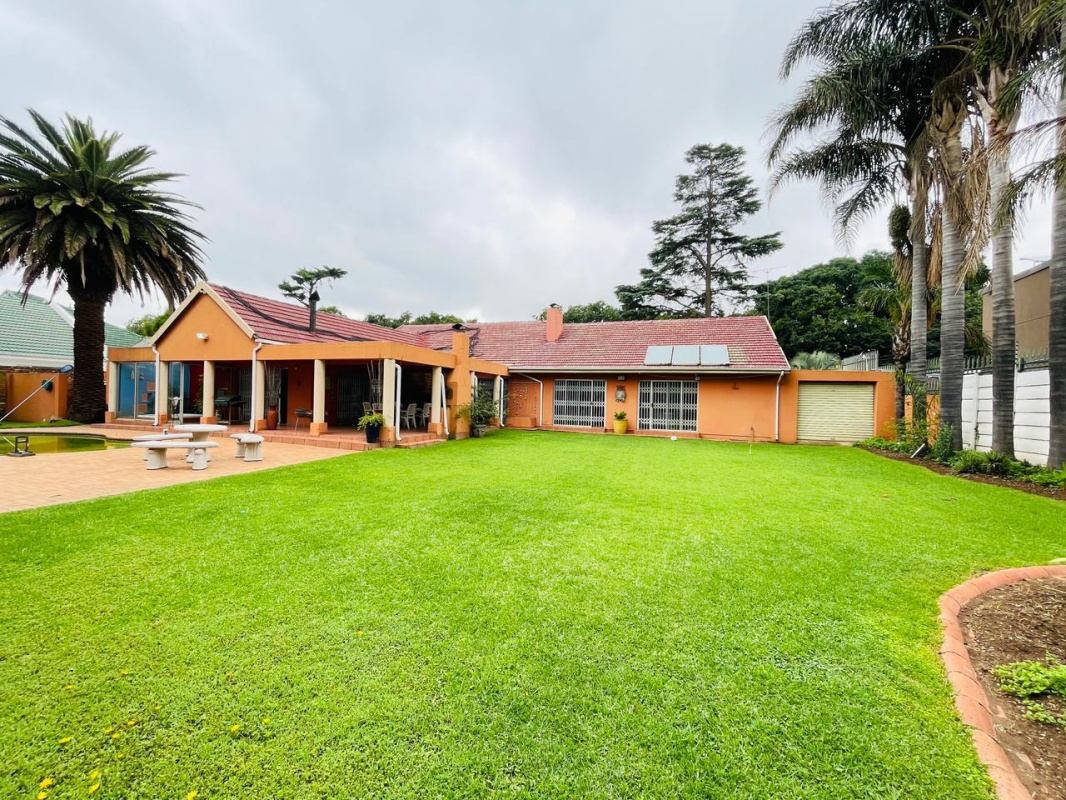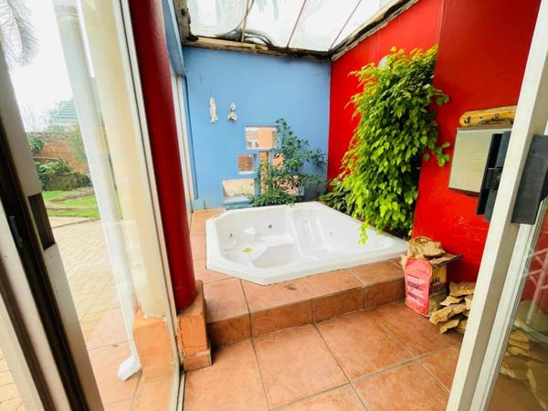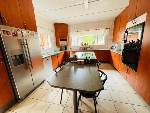 The exterior is just as impressive, with a big swimming pool, jacuzzi, and a dedicated braai area, all set within a large yard and beautifully maintained garden. Water supply is secure with a borehole and sprinkler system, ensuring the garden stays lush year-round.