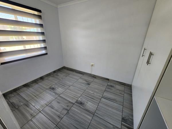 This 2 bedroom, one bathroom newly renovated unit is on the ground floor in a beautifully maintained security complex. Tiled throughout with fitted blinds. The bedrooms have built in cupboards and the bathroom has a shower. The lounge and kitchen are open plan with the kitchen having plenty of cupboard space and a connection for a washing machine. The lounge leads out to a covered patio enclosed with security bars. The complex has a communal pool and is not pet friendly.
