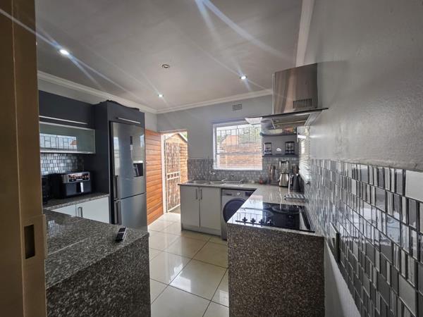 This charming 2-bedroom, 1-bathroom unit offers comfortable suburban living in a secure complex in Boksburg East. The interior boasts a modern, open-concept kitchen, seamlessly connecting to the lounge area. The kitchen is a highlight, featuring sleek grey cabinetry, granite countertops, a stylish mosaic tile backsplash, and integrated appliances including a hob, oven, and extractor fan. There''s also a double sink and dedicated space for a washing machine, ensuring convenience. The lounge area is well-lit with recessed lighting and features clean, light-colored tiled flooring, providing a contemporary feel.