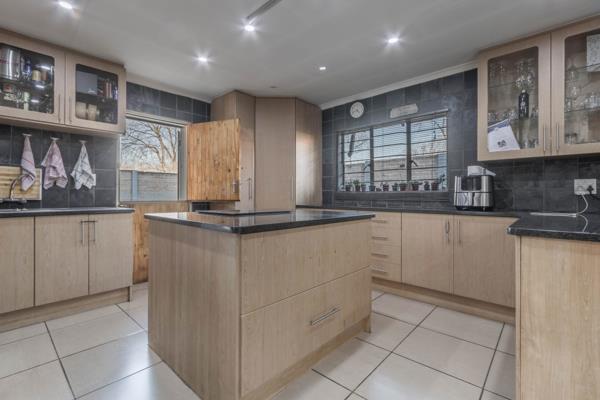 The home features sleek tiled flooring throughout and boasts a contemporary open-plan layout. The heart of the home is a modern kitchen, complete with a large center island, granite countertops, a breakfast nook, and ample space for three under-counter appliances as well as a double-door fridgea dream setup for any home chef.
