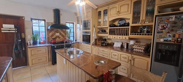 A warm and inviting country-style kitchen with granite tops and plenty of storage.