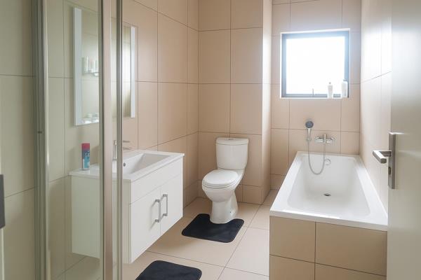 Enjoy the luxury of an open plan, fully fitted kitchen leading to the lounge area. The home is tiled throughout, ensuring a sleek, low-maintenance finish.