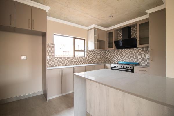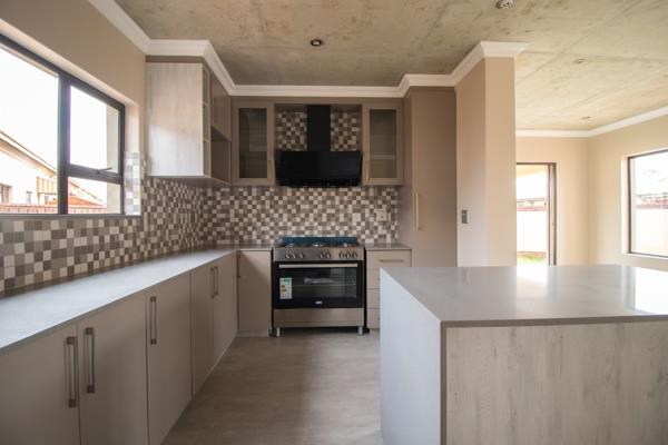 The kitchen is going to be open plan and have a gas stove and an electrical oven, piped gas, gas geyser, scullery, connection for dishwasher washing machine and tumble dryer, space for a double fridge, and granite tops.