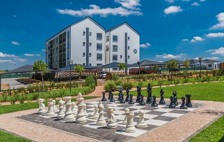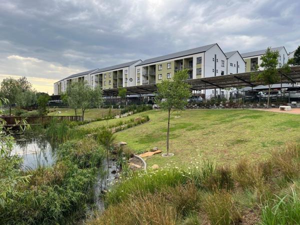 Enjoy the outdoors from your private balcony, offering scenic views of the well-maintained surroundings. The apartment includes two dedicated parking bays. Residents benefit from access to a five-star Lifestyle Centre, boasting a swimming pool, fully equipped gym, and a clubhouse. Lush green spaces, a natural water feature, and a communal braai area enhance the estate''s appeal.