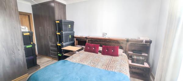 The second bedroom is generously sized and fitted with ample built-in cupboards, offering plenty of storage. A beautifully designed full bathroom, complete with a bath, toilet, and basin, services this area.