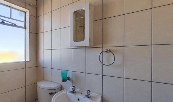 Property offers one large bedroom with built in cupboards, bathroom with shower basin and toilet.