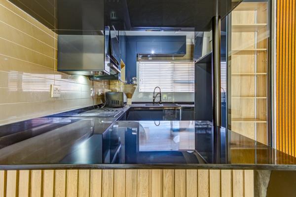 Outdoor living is a delight with a private balcony patio braai room, complete with a built-in braai, ideal for entertaining. Enjoy the scenic views from your balcony, offering a peaceful retreat. The property ensures peace of mind with comprehensive security features, including 24-hour security, a security post, access gate, electric fencing, and burglar bars. Fibre internet connectivity is also available, catering to modern communication needs.
