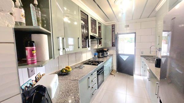 This jewel boasts three spacious bedrooms with built in wardrobes and wooden floors. The main bedroom has an exquisite onsuite full bathroom with both a bath and a shower, basin and toilet and a walk in closet. The other stylish bathroom which is shared by the two bedrooms has a shower, basin and toilet. The home enjoys a newly fitted gloss kitchen with an electric stove with a hob. The lounge is well sized leading you to the passage with a linen cupboard. Also it has an open plan dining room which fits an eight seater table and chairs and a sitting room with a fireplace for warmth in winter months. The attention to detail is on point with design and finishes this is a move in, unpack and enjoy your new home.