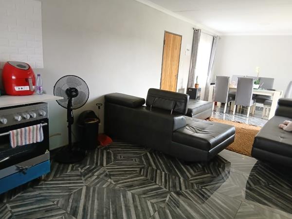 Discover this inviting 3-bedroom, 2-bathroom home situated within a secure lifestyle estate in Dawn Park, Boksburg. Spanning a comfortable 122 sqm on a 300 sqm erf, this residence offers a practical and modern living experience. The interior boasts an open-plan layout, seamlessly connecting the lounge, dining area, and kitchen, all adorned with contemporary patterned floor tiles. The kitchen, while compact, is functional and integrates well into the living space, perfect for everyday convenience.