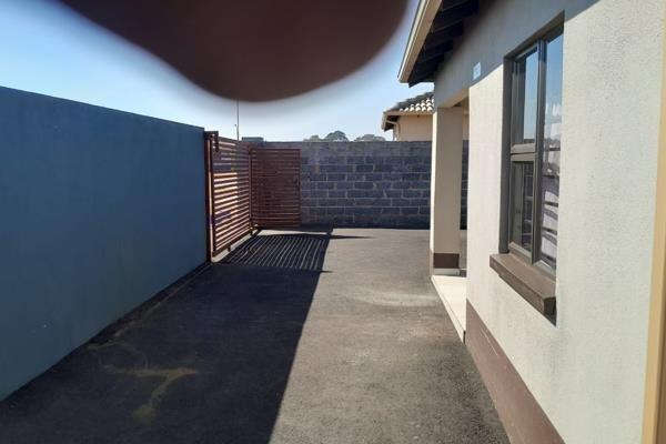 Externally, the property presents a clean and appealing facade with a two-tone light and brown exterior and a light brown tiled roof. A covered front patio offers a welcoming entrance. The 285 sqm erf features extensive paving, ensuring low maintenance and providing ample off-street parking for two vehicles. Boundary walls enhance privacy and security, complementing the robust security measures in place.