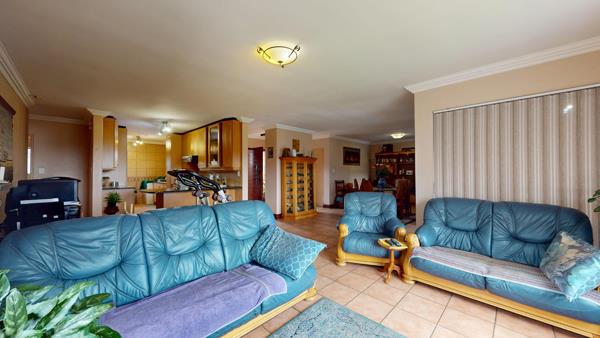The home offers a light filled, north facing open plan layout, seamlessly connecting the lounge and dining areas. An enclosed entertainment area forms part of the house, providing an ideal space for year round entertaining while enjoying views of the garden and pool. The kitchen is neat and functional, featuring granite countertops and ample cupboard space.