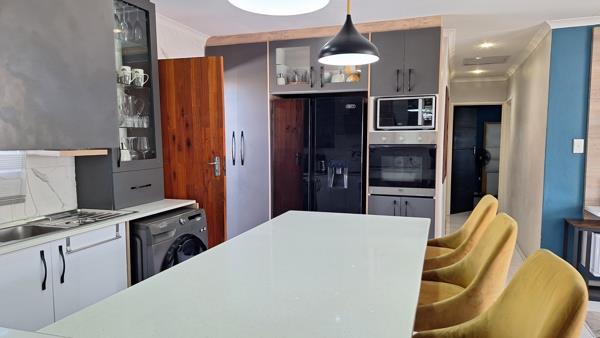 There is a stunning open-plan kitchen with ample cupboard space and a breakfast nook designed for comfort and convenience.