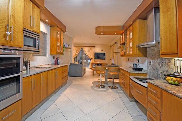 This stunning home boasts a formal lounge, TV lounge, and dining room, all equipped with underfloor heating for added comfort. The beautiful kitchen with a scullery seamlessly connects to the double garage, ensuring convenience and ease of access. For those who love to entertain, an enclosed patio with a built-in braai awaits, with stacker doors that open up to reveal the serene garden and solar-heated swimming pool.