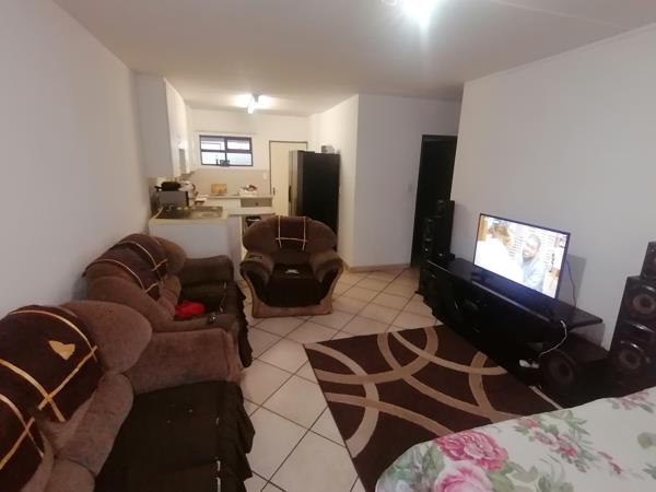 2 very spacious bedrooms with built in cupboards, 1 bathroom with shower and bath. Open plan lounge, dining room and newly painted kitchen with space for washing machine.