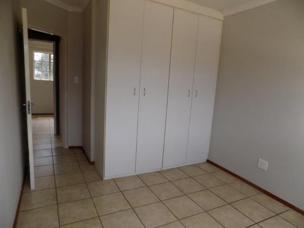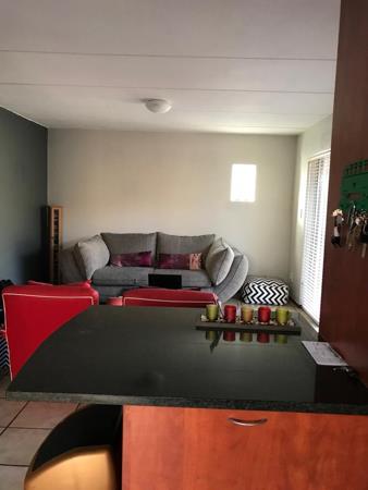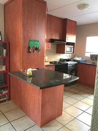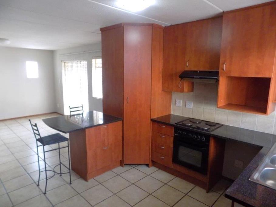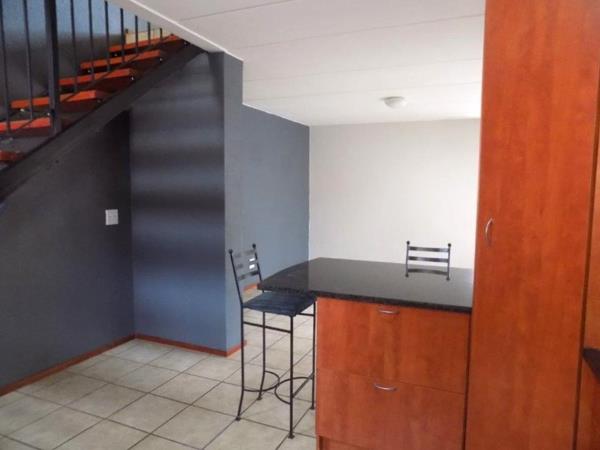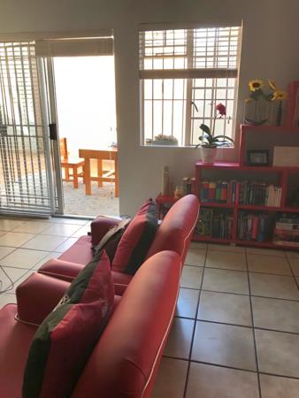The tiled open plan lounge and dining room flows out to a neat private garden. The spacious open plan kitchen boasts lovely granite tops, hob, under counter oven, pantry, and 1 plumbing point.