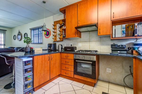 This beautiful corner unit is situated within a secure complex located in Farrar Park, Boksburg. It offers an open plan kitchen and living area, which leads to a large private and paved patio area. The kitchen offers ample cupboards, durable granite countertops, and a built-in gas hob with an extractor fan and breakfast counter. The floors are tiled throughout the unit, ensuring easy maintenance. The bedrooms offers built-in cupboards and the newly renovated bathroom offers a shower.