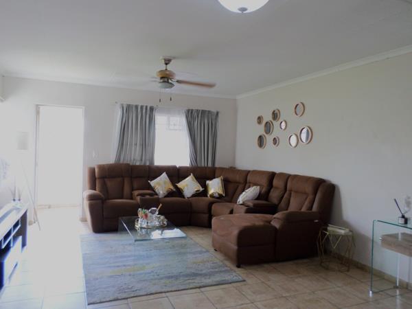 The open plan living area offers space and comfort with the kitchen fitted with