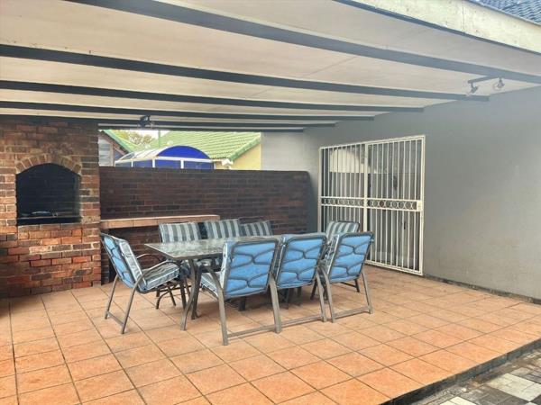Large open plan lounge. Dining room. Family room. 4 Bedrooms. 2 Bathrooms. Main bedroom with an en-suite bathroom. Kitchen with granite tops, a breakfast counter, scullery, pantry and laundry room. Fireplace inside the home to keep warm to on those cold winter nights. Double garage with automated doors. 4 Carports. Large pool to make a splash. Neat and private garden with a sprinkler system. Covered patio. Braai area. Store room. Staff quarters. Includes 6 solar panels with a 8kw Inverter.