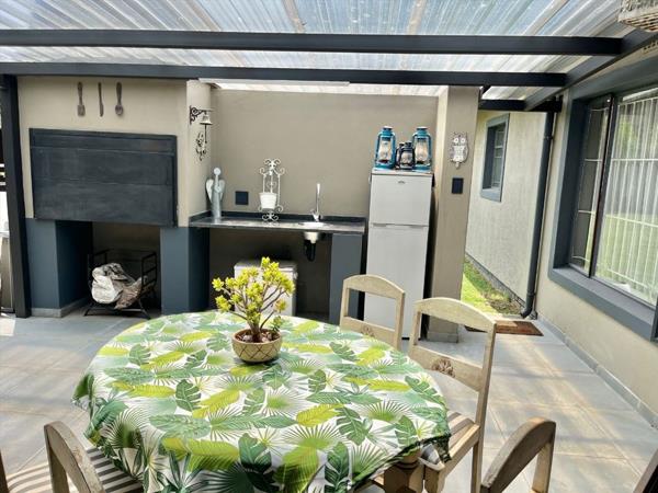Sunny and light large living areas, beautifully tiled that opens onto entertainment covered patio for your comfort to even braai on a rainy day.