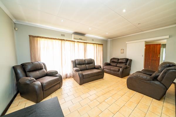 The main residence welcomes you with a well-designed open-plan layout that seamlessly connects the living and dining areas. With a lounge and an additional dining room, the home offers ample space for both relaxation and entertaining. The interiors are finished with durable tiled flooring and recessed ceiling lighting, creating a bright, functional living environment. A well-appointed kitchen services the main house, while the second kitchen and lounge within the secondary residence adds excellent flexibility for dual living arrangements.