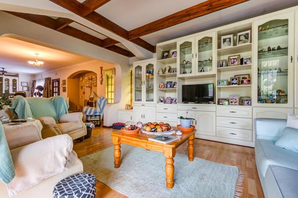 The interior features two distinct lounges and a dedicated dining room, providing versatile areas for relaxation and social gatherings. The functional kitchen is ready to cater to your culinary needs. A cozy fireplace adds warmth and ambiance during cooler evenings. The property benefits from an open-plan layout in key areas, enhancing the sense of space and flow throughout the home. Accommodation comprises three comfortable bedrooms, with the master bedroom enjoying the convenience of an en-suite bathroom, complemented by a second well-appointed bathroom.