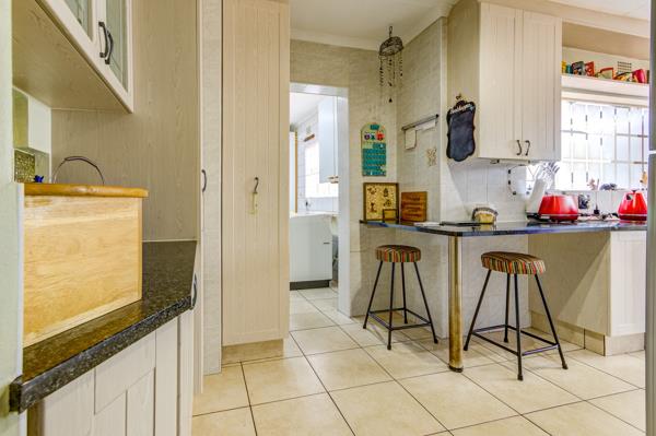 Step outside to a covered entertainment space featuring a built-in braai, perfect for hosting friends and family all year round. The beautifully maintained garden surrounds the home, offering a tranquil and private outdoor sanctuary.