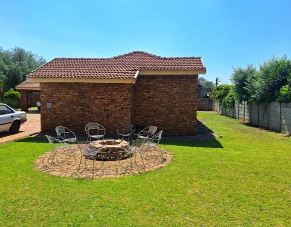 Step outside to discover a generous 922 sqm erf, featuring an established garden and a well-maintained lawn. The outdoor space is perfect for entertaining, complete with a built-in fire pit and seating area, alongside a private paved seating spot. Enjoy the luxury of a swimming pool, ideal for warm South African days. Parking is abundant with two garages, two additional parking spaces, and covered parking, complemented by a paved driveway. The property also includes an outside toilet for added convenience.