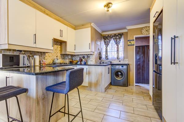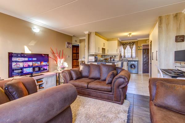 Discover this inviting 2-bedroom, 1-bathroom residence within a secure complex in Impala Park, Boksburg. The open-plan living area seamlessly integrates a comfortable lounge and dining space, featuring durable tiled flooring and elegant crown molding. Natural light fills the room, which also includes a dedicated home office nook.