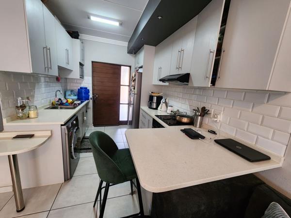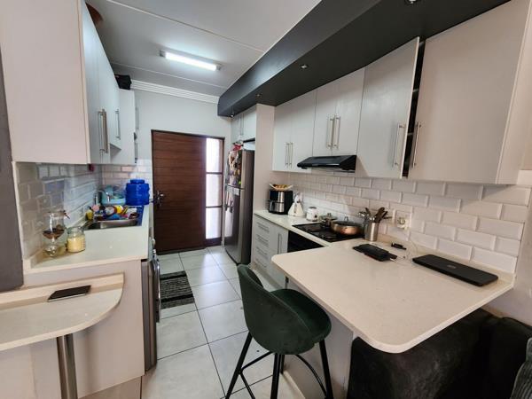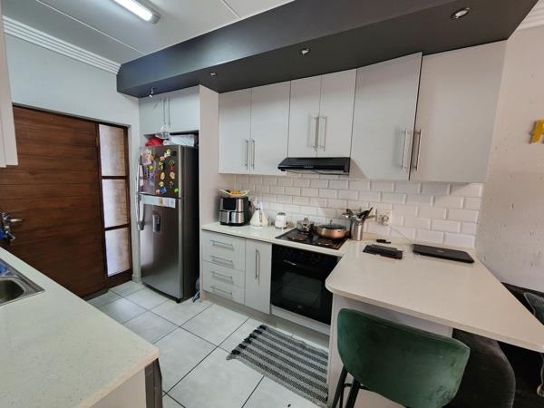 Just perfect for the first time buyer or busy executive. This modern lock up and go unit is tiled throughout and has 2 sizeable bedrooms and 1 full bathroom. The dazzling kitchen has Caesar stone tops and opens up onto the living area with sliding doors which takes you out to the covered patio with built in braai, overlooking a private garden. The unit has been allocated 2 covered parking spaces and has prepaid electricity. The complex has a communal swimming pool, gym, 24 hour security and is pet friendly.