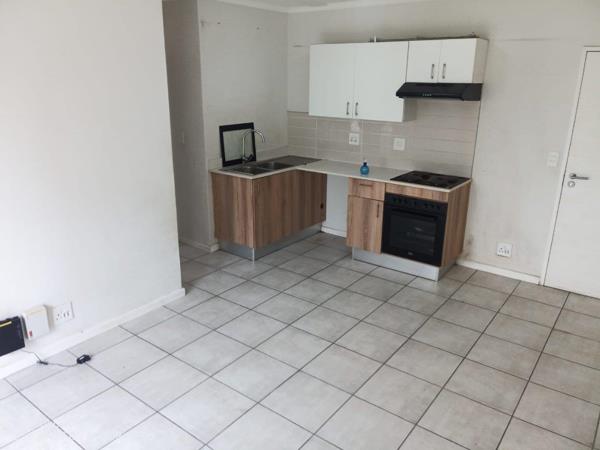 Inside, the unit boasts a modern and inviting layout. The open-plan kitchen, equipped with a 4-plate stove, oven, and extractor fan, seamlessly flows into the spacious lounge. A sliding door opens onto a private balcony, perfect for enjoying morning coffee or evening relaxation. The generously sized bedroom features built-in wardrobes, providing ample storage space. The full bathroom is complete with a shower, bathtub, basin, and toilet.