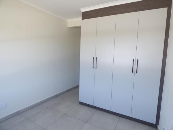 The apartment features two spacious bedrooms with built-in cupboards and two modern bathrooms, including a main en-suite. The open-plan kitchen flows seamlessly into the lounge area, creating a warm and inviting atmosphere. A complimentary washing machine is included with each unit for added convenience. Parking is taken care of with one covered and one open parking bay.