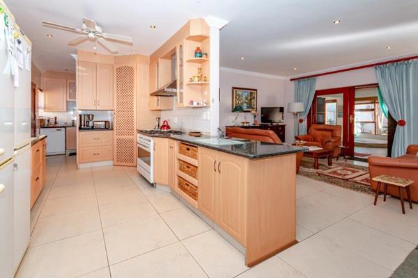 The heart of the home is the beautiful open-plan kitchen, complete with a top-of-the-range gas stove, separate scullery, and dedicated laundry area. The layout effortlessly flows into the open-plan dining room and formal lounge, perfect for entertaining guests or enjoying family time.