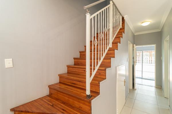 Upstairs, elegant stairs lead to generous bedrooms with ample built-in cupboards and a spa-inspired bathroom the ideal retreat after a busy day.