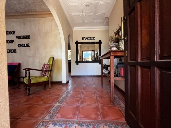 Inviting entrance hall. Spacious lounge. Open plan dining room. Family room entertainment area with a fireplace and a sauna. Family size kitchen. Study making working from home easy breezy. A whopping 5 bedrooms. Master bedroom that is worthy of its name with a sliding door that leads to the jacuzzi outside, a stunning full bathroom. 4 Bathrooms in total. Laundry room outside just off the kitchen. Lapa with a braai area right by the pool making it the perfect spot for Saturday Rugby days with friends and family. Staff quarters. Solar system. Invertor. Pre-paid electricity.