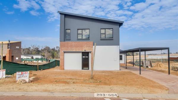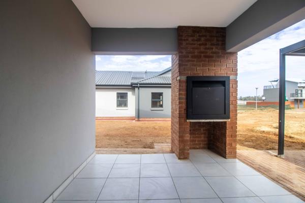 The tiled, open plan kitchen features granite tops and built in cupboards with a practical laundry area. A welcoming living area opens to the outdoors, ideal for family time and easy entertaining. Upstairs there are three well proportioned bedrooms with built in cupboards and tiled floors, while the family bathroom and en suite provide convenient, modern fixtures. A guest toilet adds practicality for visitors. Outside, the property benefits from a double tandem carport and secure parking, including fibre and satellite connectivity for modern living. Pets are welcome, and a solar geyser contributes to lower utility costs.