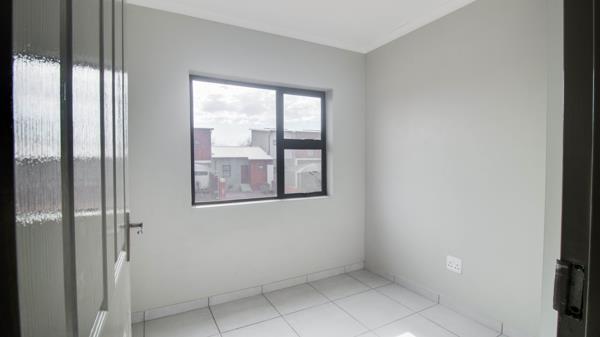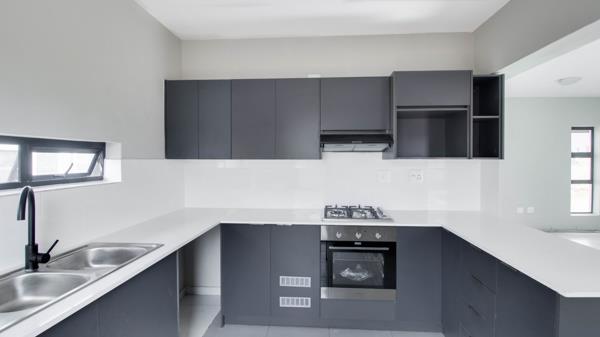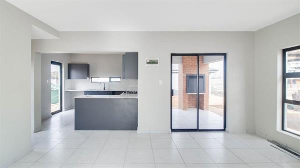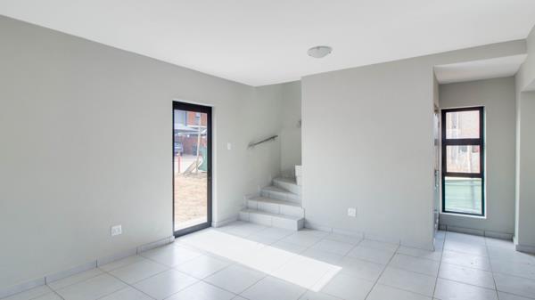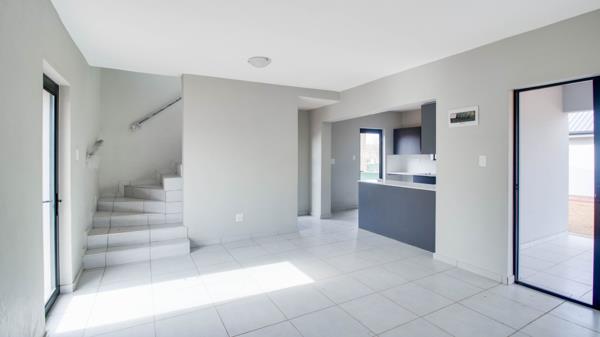 This stylish two storey residence in Parkdene, Boksburg offers a bright, open plan living space that flows from the kitchen to the lounge.