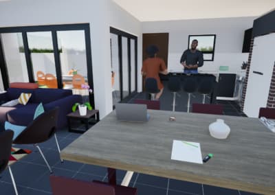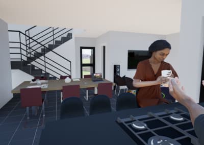 The well-appointed kitchen flows seamlessly into the dining area, creating an inviting atmosphere for family meals and gatherings.