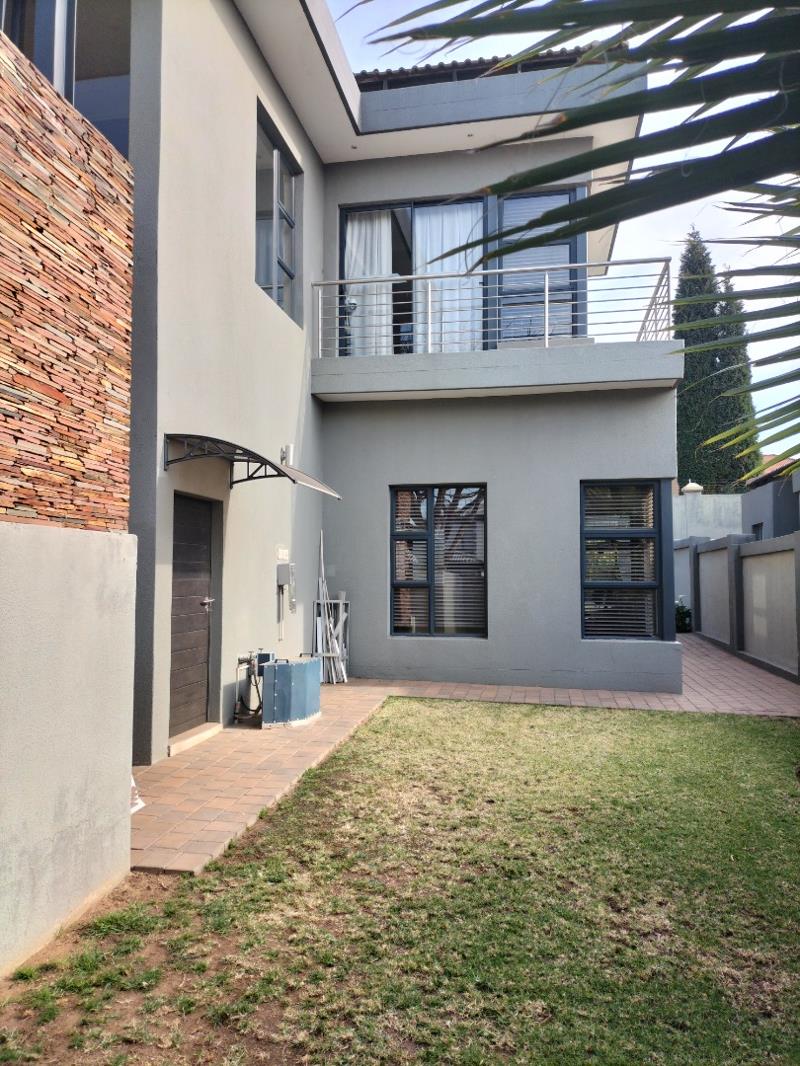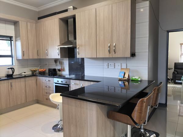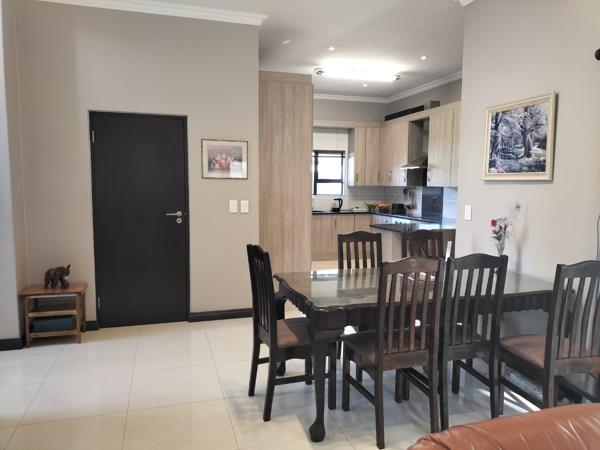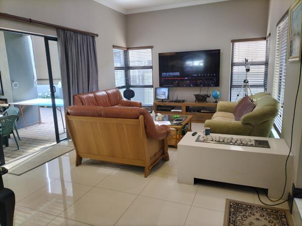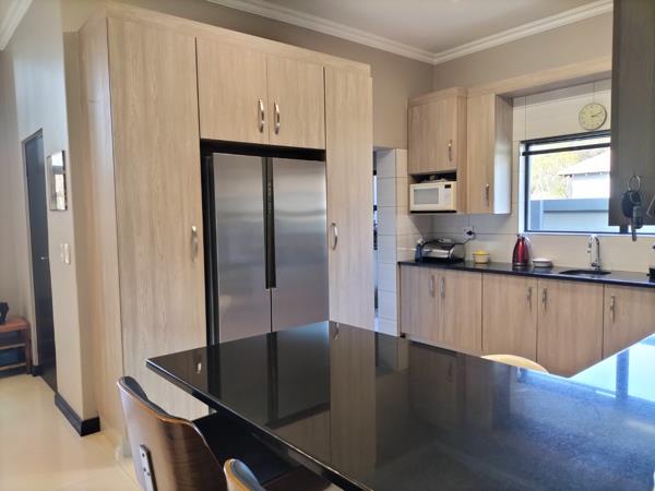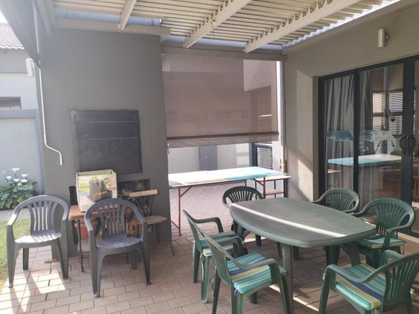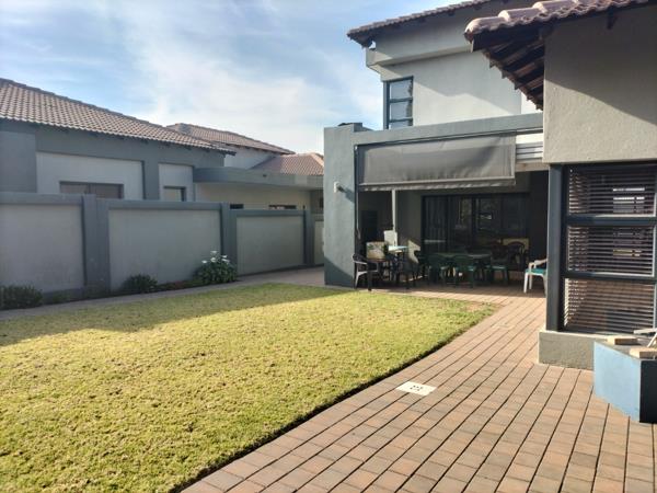 This beautifully maintained home in the prestigious and secure La Como Estate is both elegant and modern. On entering through the double volume entrance hall you are met with a well proportioned open plan lounge, dining and gourmet kitchen. Both lounge and dining area opens up onto the louvre covered patio with a built in braai and roller blinds for those hot and sunny days. The kitchen is well equipped with granite tops and a separate scullery with loads of space for your appliances. The one bedroom with en-suite bathroom is located downstairs for the comfort of guests or a family member.