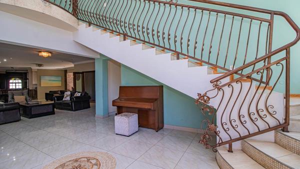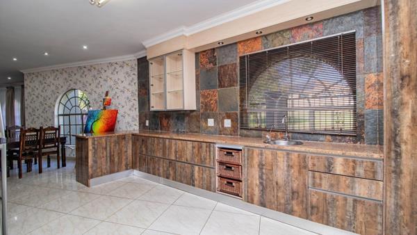 Upon entering this beautiful home, you are greeted by a grand entrance hall that seamlessly flows into an open-plan living area. The spacious family room, dining area, and lounge are perfect for entertaining and relaxation, all opening onto a charming patio that overlooks a sparkling pool and lush garden. The heart of this home is its expansive kitchen, designed for both functionality and style, providing ample space for culinary delights and family gatherings.