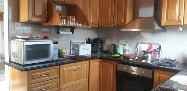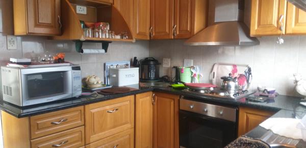 The home offers 3 bedrooms, 2 bathrooms, with beautiful cupboards and 2 modern bathrooms, the home boasts tiled floors throughout. The generous size kitchen is complemented with lots of cupboard space and granite top counters. There is space for appliances, a fitted modern electric stove and hob. Ample space for a double door refrigerator and additional cupboards if required.