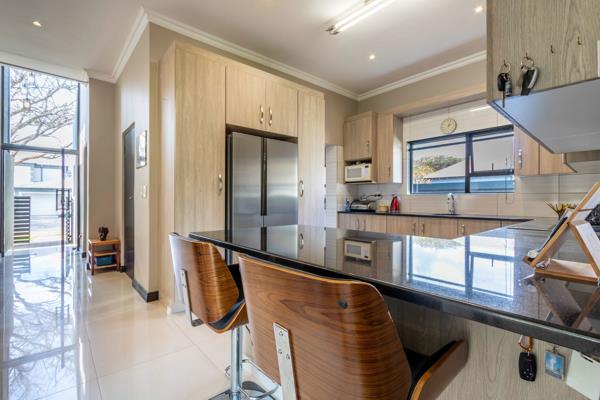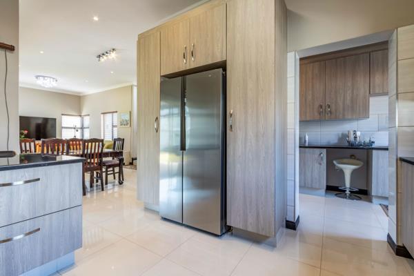 Step outside to a covered entertainment patio complete with a built-in braai, overlooking a beautifully maintained garden perfect for relaxed afternoons or hosting family and friends.