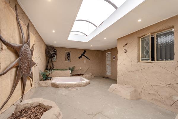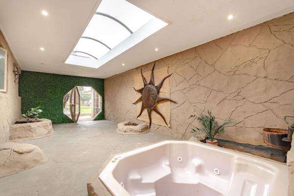 Entertain with ease in the dedicated entertainment lounge, featuring a built-in braai and separate bar area. Parking is abundant with a double garage and tandem carport accommodating up to three large vehicles.