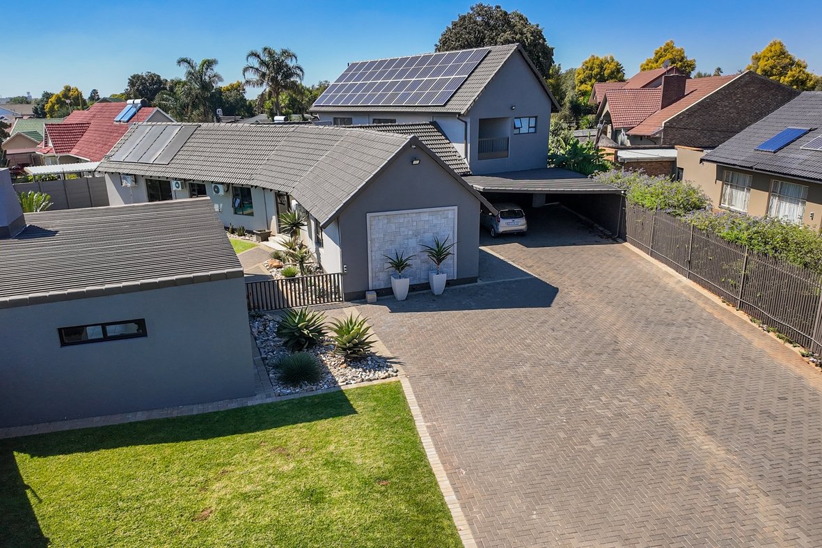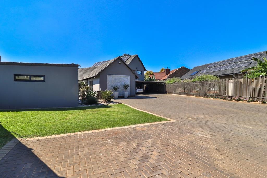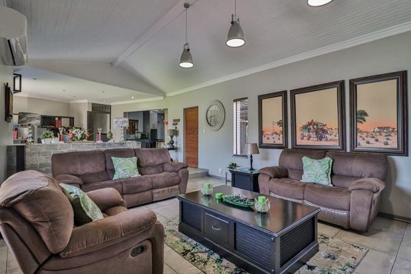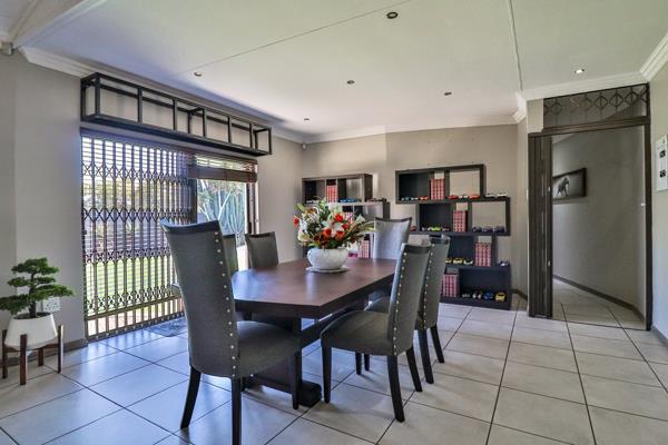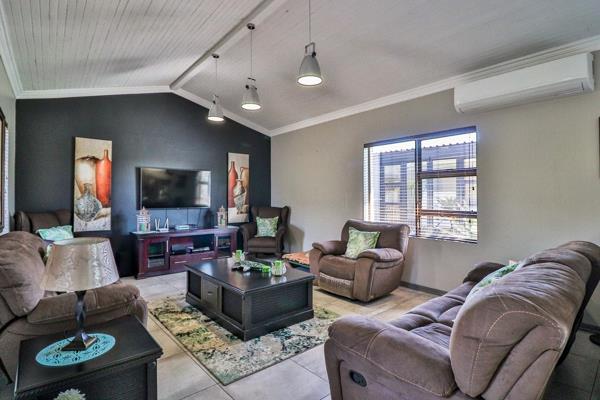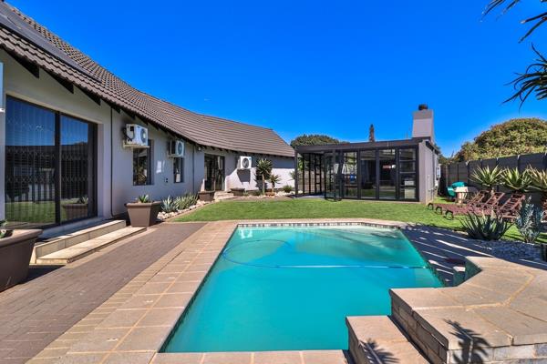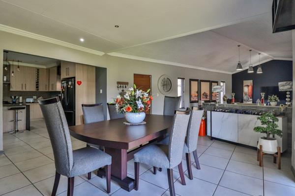Hosting guests will be a delight in the expansive entertainment space, conveniently located beside the house, featuring a built-in braai and bar overlooking the lush, well-maintained garden and sparkling pool. The area is enhanced with aluminium stacker doors and windows.